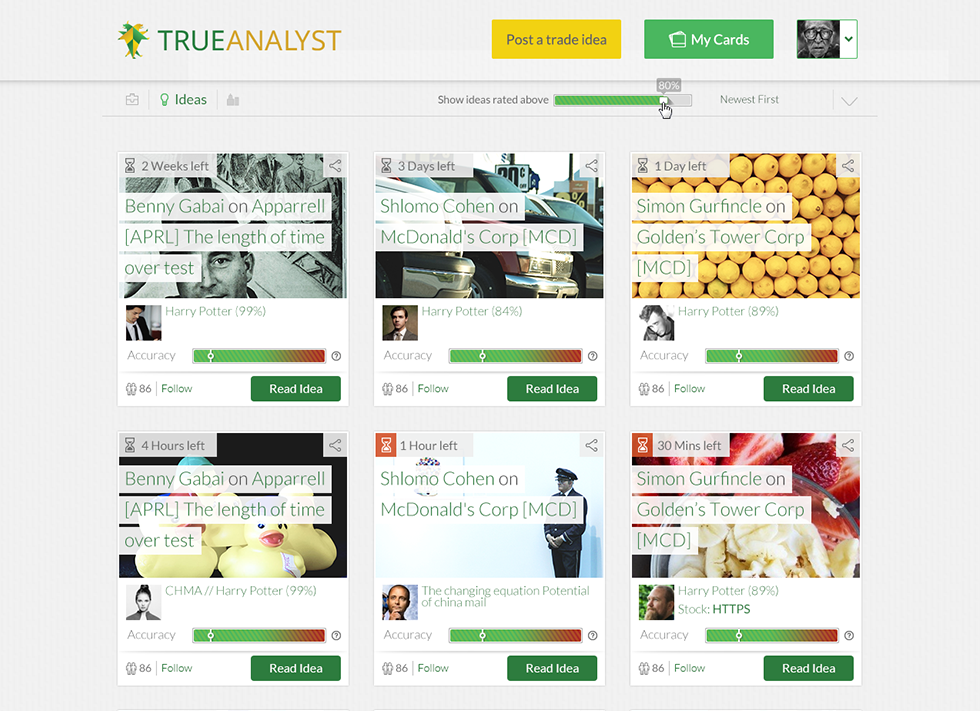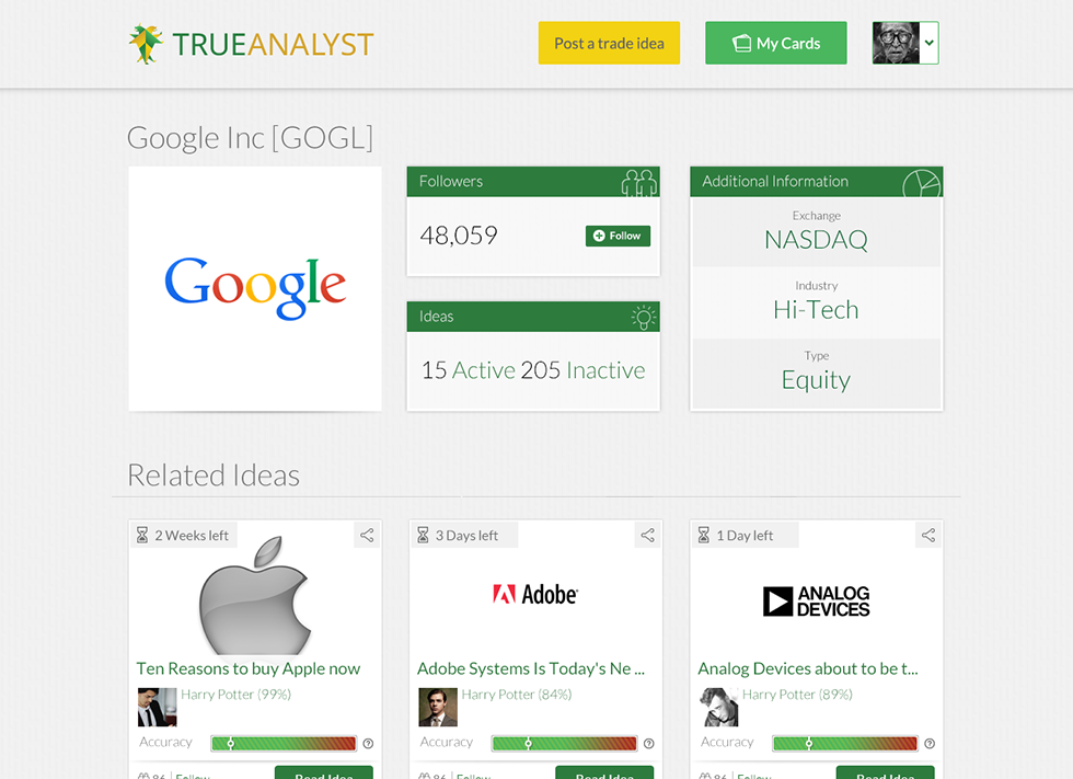 TrueAnalyst studies past success/failure of analysts and rates it in an easy to comprehend terms. Really fun project.